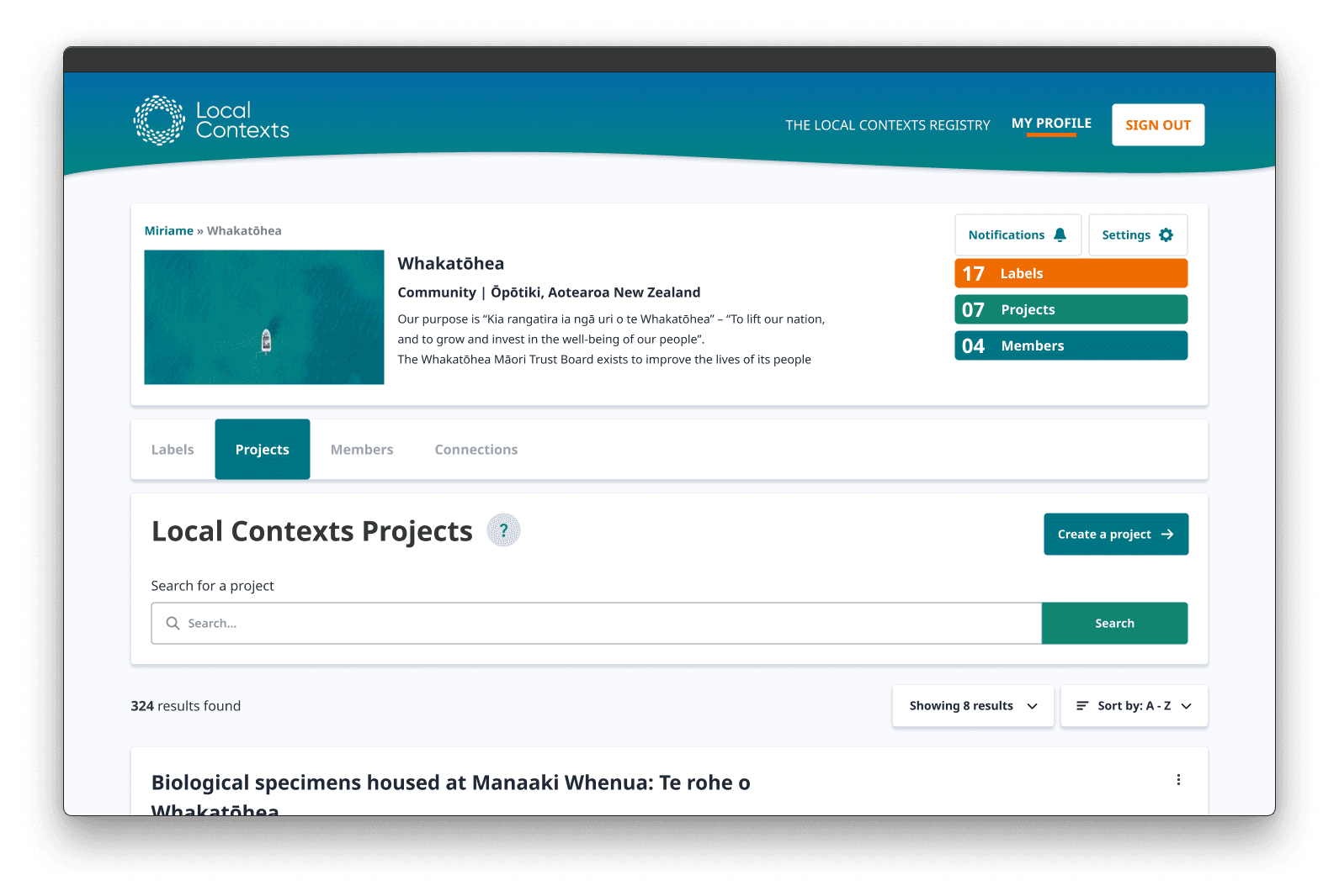 Another key challenge was enabling structured collaboration between Indigenous communities and institutions. This required the design of a centralised registry that allowed communities to signal their willingness to collaborate and enabled institutions to identify relevant Indigenous collections within their archives. We also implemented functionality to support the secure transfer of TK Labels, project-based collaboration workflows, and collective decision making — ensuring transparent communication and clear governance throughout the process.