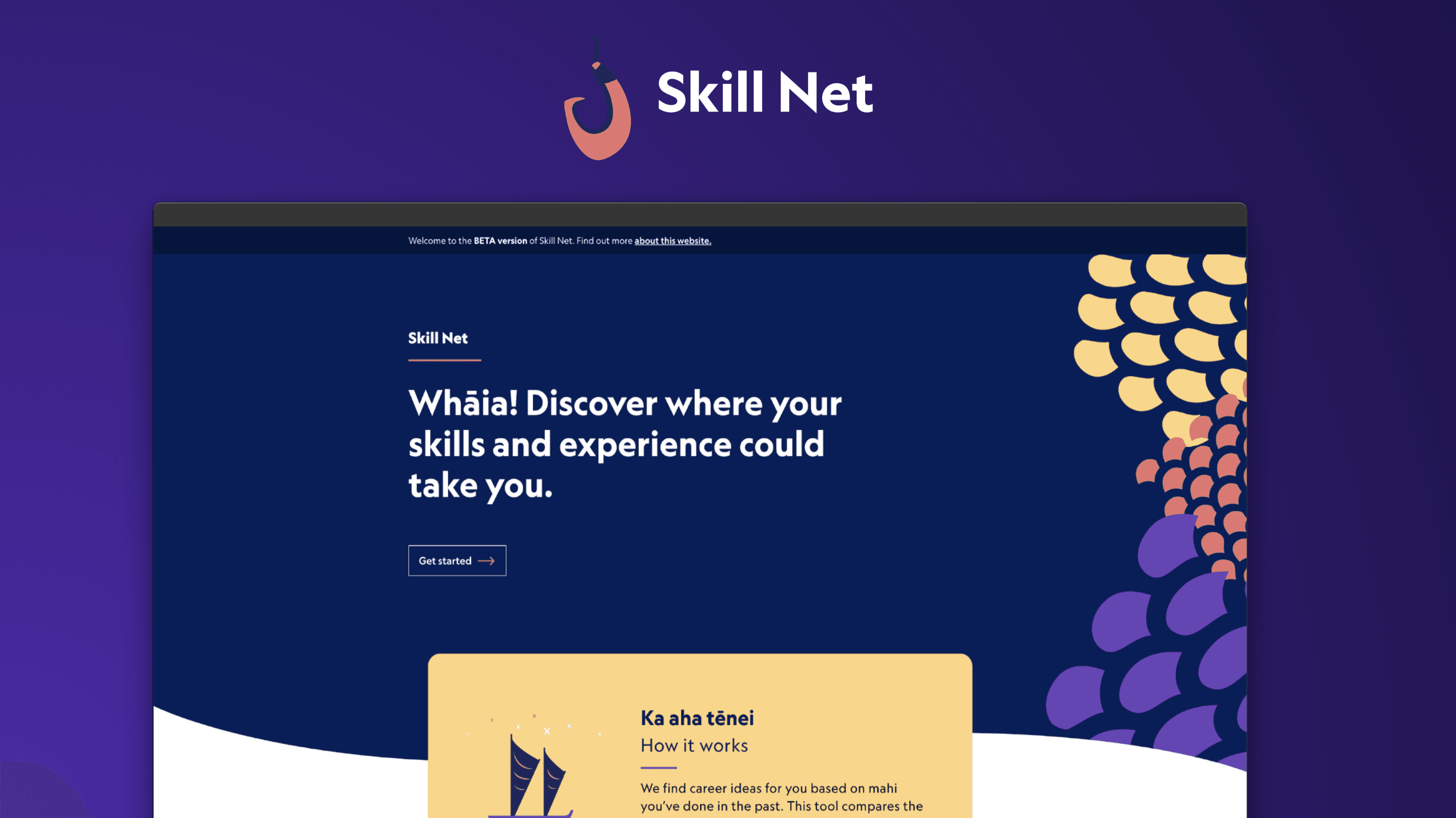 The outcome was a bilingual tool that empowered job seekers and championed indigneous knowledge through the act of casting a net to new opportunities aka 'Skillnet'. The tool was soft released in 2022 to a small group of job seekers and has been incorporated into the current careers NZ experience called Tāhatu.