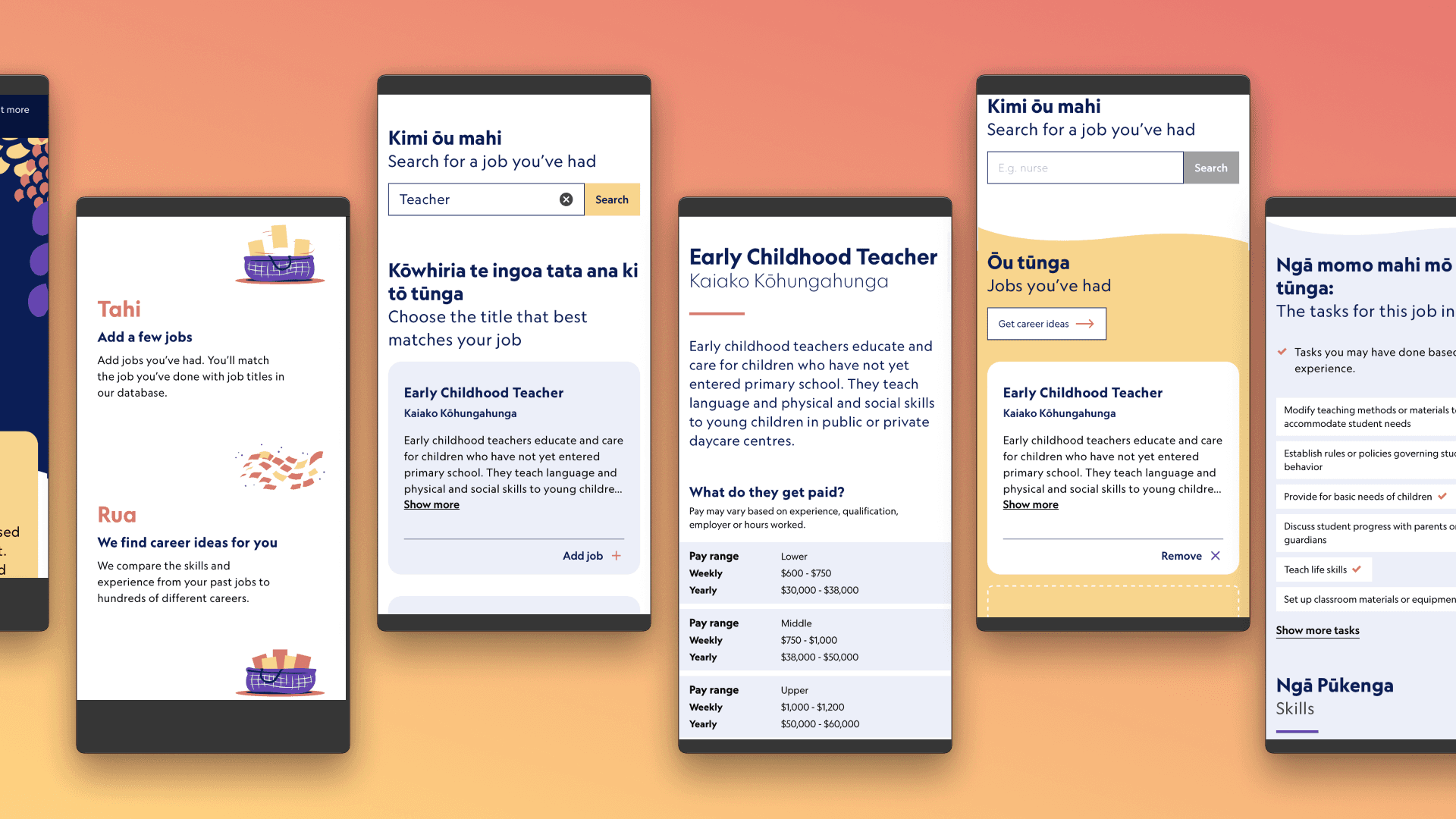 We designed a localised career planning tool that supports Kiwis to see the value in their lived experience and work history. Job seekers can identify their transferrable skills, explore potential career pathways, and understand what is needed to transition into new roles. By also showing how in-demand these roles are in Aotearoa, the tool helps people feel more confident, informed, and hopeful about their next steps.